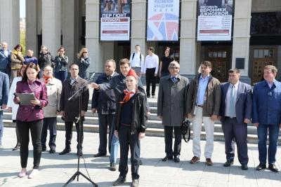 ступенях перед Оперным театром было многолюдно: около 450 школьников пришли,