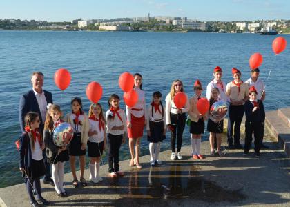 В такой же торжественной атмосфере прошёл приём новых мальчишек и девчонок в севастопольскую пионерскую организацию. Честь повязать пионерские галстуки выпала Первому секретарю Севастопольского горкома КПРФ Василию Михайловичу Пархоменко и Первому секретарю Севастопольского отделения ЛКСМ РФ Александру Черемёнову.