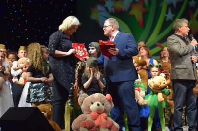 Александр Наумов и Павел Грудинин вручили юным артистам подарки, а педагогам