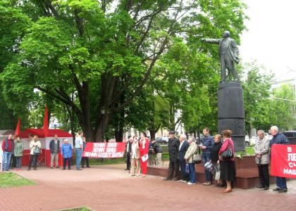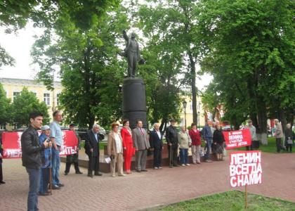 города Калуги вышли на митинг с лозунгами: «Ленин жил, Ленин жив, Ленин будет
