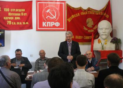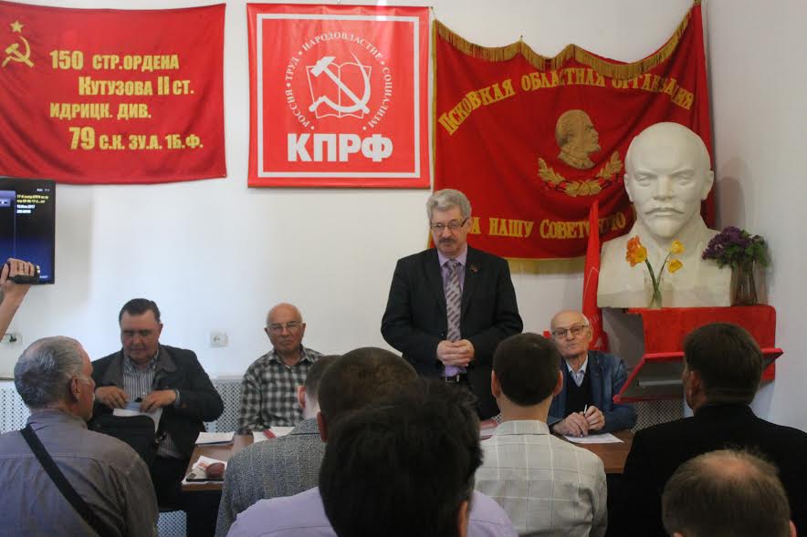 Далее Петр Алексеенко представил присутствующим доклад «Об итогах XVII Съезда КПРФ и задачах коммунистов Псковского областного отделения КПРФ по выполнению его решений».