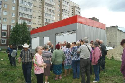 Относительно подобной проблемы сегодня собирались Засвияжцы. Около дома № 85 по улице Отрадной некий предприниматель г-н Джаббаров решил поставить торговый павильон. Совершенно не посоветовавшись с жильцами близлежащих домов, с 8 по 9 июня началось возведение каркаса объекта между этим многоквартирным домом и зданием местного супермаркета.