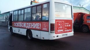 «КПРФ разместила на бортах маршрутных такси свою наружку. Их всего-то менее двух десятков. И, несмотря на это незначительное количество, все владельцы маршруток (хотя владельцы разные) отказались от размещения. Мотив – загадочный звонок им из мэрии. Кто звонил, они не говорят, но, судя по реакции, разговор был категоричным. Иначе как оценить то, что они согласились сами ночью обдирать свои машины с уже нанесенной и проплаченной наружкой, чтобы утром можно было машинам выйти на маршрут?»