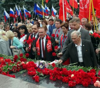 Первый секретарь Курского областного комитета КПРФ, депутат Госдумы ФС РФ, председатель ЦКРК КПРФ Н.Н. Иванов принял участие в праздновании 74-й годовщины победы на Курской дуге. 23 августа куряне отметили 74-ю годовщину победы на Курской дуге. Курские коммунисты традиционно вышли на мемориал памяти павших с алыми знаменами, в накидках и бейсболках с символикой КПРФ. А потому колонна казалась абсолютно красной. В руках практически у каждого были гвоздики и другие цветы, чтобы положить их у Вечного огня. Ведь Курская битва занимает в Великой Отечественной войне особое место. Она продолжалась 50 дней и ночей, с 5 июля по 23 августа 1943 г. По своему ожесточению и упорству борьбы эта битва не имеет себе равных. Вот и росла гора из цветов все выше и выше, пока не затмила собой даже Вечный огонь!