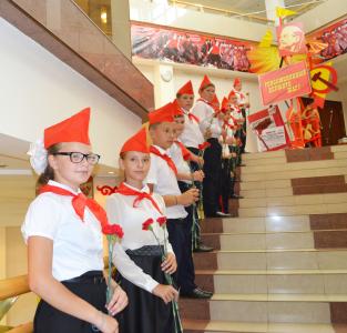 13 сентября, при большом стечении народа, в Национальном музее имени Н.Н. Пальмова в Элисте состоялось торжественное открытие выставки «Революционный держите шаг!», посвящённой 100-летию Великой Октябрьской социалистической революции. Инициатором и спонсором выставки является Калмыцкое республиканское отделение КПРФ.