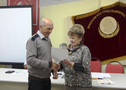 Перед началом мероприятия первый секретарь Саратовского обкома КПРФ, вице-спикер Саратовской облдумы О.Н. Алимова выполнила приятную обязанность, вручив партбилеты молодым новобранцам Компартии, а затем поздравила с юбилеем первого секретаря Новоузенского РК КПРФ А.П. Курочкина.