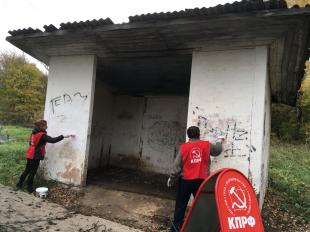 В Щекинском районе Тульской области коммунисты провели очередной субботник – привели в порядок памятник В.И. Ленину и территорию вокруг него.