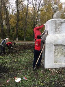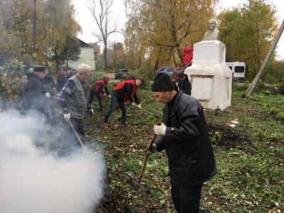 В Щекинском районе Тульской области коммунисты провели очередной субботник – привели в порядок памятник В.И. Ленину и территорию вокруг него.