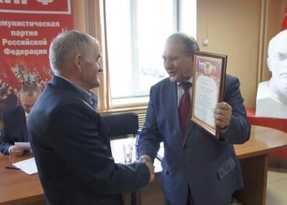 В завершении работы Пленума памятными знамёнами «100 лет Великой Октябрьской социалистической революции» наградили Читинское городское, Читинское, Нерчинское, Сретенское и Чернышевское местные отделения КПРФ.