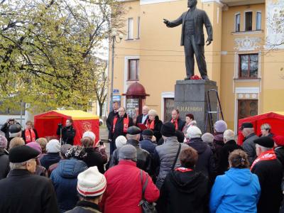 На митинге выступили глава администрации Бережковского сельского поселения, член бюро Волховского райкома КПРФ Владимир Ожерельев, первый секретарь Сосновоборского горкома КПРФ, депутат Законодательного собрания Ленинградской области Николай Кузьмин, первый секретарь Киришского райкома КПРФ, помощник депутата Госдумы РФ Сергей Бутузов. Стихи пролетарского поэта Владимира Маяковского прочли член Союза советских офицеров, волховчанин Юрий Валов и секретарь Всеволожской первичной организации КПРФ Кугар Меграновна Базаркина.