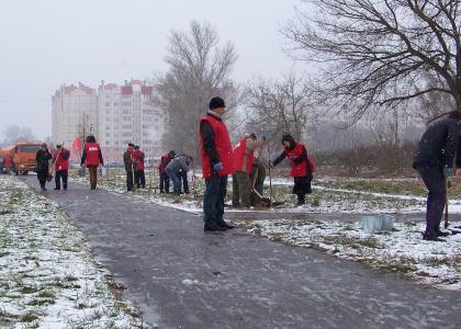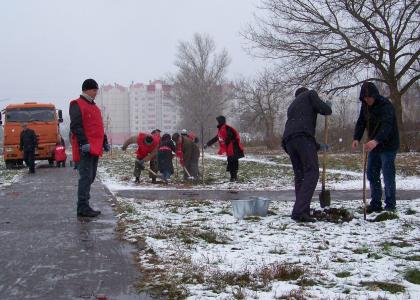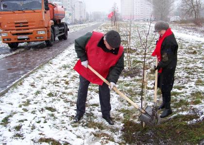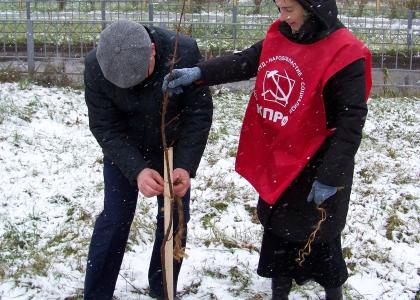 Сегодня коммунисты Советского района г. Орла посадили 50 деревьев на аллее у школы №50.