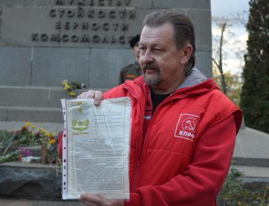 Далее выступил секретарь горкома комсомола Александр Черемёнов. «Несмотря на разрушение Советского Союза и насаждение капитализма в России, комсомол не прекратил своего существования. Преемником ВЛКСМ в России является ЛКСМ РФ. И сегодня комсомольцы идут, вместе с коммунистами, в первых рядах борцов против социальной несправедливости, за возрождение социализма», — сказал Александр.