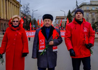 В колонне демонстрантов плечом к плечу прошли коммунисты семи районов краевого центра, комсомольцы, «дети войны». В этот праздничный день к нам присоединилась организация обманутых дольщиков и продолжающие борьбу за свои права дальнобойщики.