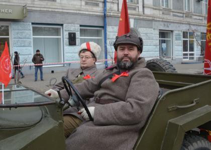 6 ноября главная магистраль Красноярска – проспект Мира – окунулся в дух Революции. Впереди колонн на ретро-автомобиле ехали революционные солдаты, а за ними – копия броневика. И это не случайно. Город на Енисее славен революционными традициями. Красноярцы не остались в стороне от событий волнений 1905 года. Красноярск был в числе первых городов Российской империи, где в октябре 1917 года установилась Советская власть.
