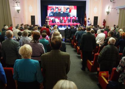 После вручения партийных билетов и медалей особо активным членам КПРФ с докладом выступил Первый секретарь Комитета Кировского областного отделения КПРФ, руководитель фракции КПРФ в Заксобрании Сергей Мамаев. Основное внимание в докладе уделялось роли Октябрьской революции в мировой истории, нынешнему международному положению, ситуации в стране и в области, задачам коммунистов на ближайшее время. Докладчик особо подчеркнул, что вопрос возвращения власти в руки трудящихся – это вопрос выживания России.