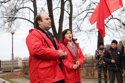 После завершения митинга собравшиеся проследовали на набережную Рязани к памятнику рязанцам – героям гражданской войны, где возложили цветы к монументу молодым борцам за дело Октября. Митинг открыла и вела секретарь Рязанского обкома КПРФ, депутат Рязанской городской Думы Э.Н. Волкова.