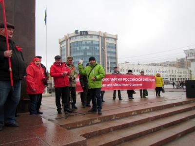 Руководители местных партийных отделений в своих выступлениях провели параллели между завоеваниями, полученными после Октябрьской революции, и итогами капиталистической контрреволюции. Н.Ф. Забузов поведал о горьких реалиях, которые сложились в Ржаксинском районе. Первый секретарь Инжавинского РК КПРФ В.В. Кирьяков конкретными цифрами обосновал губительность либеральной политики. «Мой родной Инжавинский район вымирает, закрываются медицинские и образовательные учреждения, из-за разбитых дорог многие населённые пункты отрезаны от цивилизации. Нас насильно тянут в тёмное царское прошлое – нищеты и бесправия», - считает Владимир Васильевич.