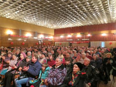 В этот же день в д/к «Электрон» состоялось торжественное собрание, где было продолжено награждение заслуженных коммунистов, вручение партийных билетов - всего в этот день их получили более 40 коммунистов. С докладом о немеркнущей славе Великого Октября и его мировом значении выступил А.И. Жидков.