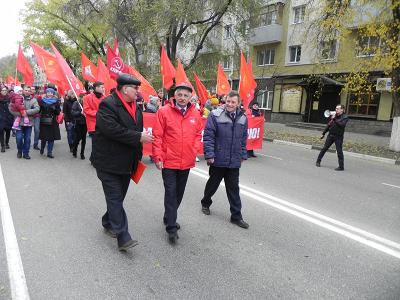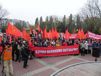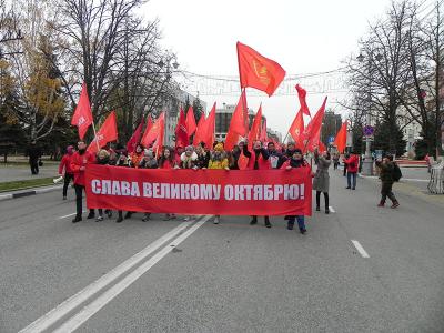 Белгородские коммунисты и их союзники провели демонстрацию, посвящённую 100-летию Великой Октябрьской социалистической революции.