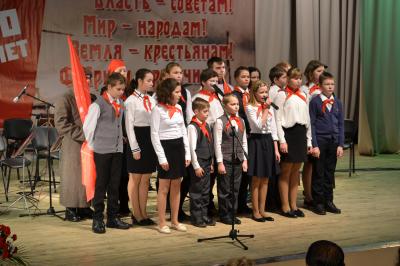собравшимися выступили юные ленинцы – члены областной пионерской организации,