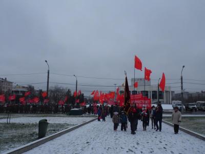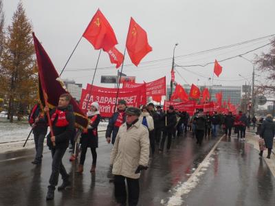 Демонстрация в честь 100-летия Великой Октябрьской социалистической революции состоялась 6 ноября. Организованная пермским крайкомом КПРФ, она собрала под алые знамёна коммунистов и комсомольцев, сторонников партии и молодёжь. В её ряды влились представители РКРП, активисты-общественники, коллектив пермского специализированного Дома ребёнка, присоединялись жители города.