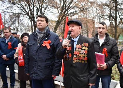 В своем выступлении лидер тульских коммунистов области Олег Лебедев отметил всемирное историческое значение Великой Октябрьской социалистической революции.