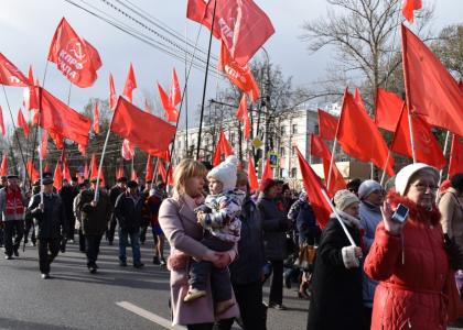 Традиционная ноябрьская демонстрация в этом году отличалась особой массовостью. В год столетнего юбилея Великой Октябрьской социалистической революции многие жители областного центра захотели пройти по главной магистрали Тулы – проспекту Ленина - под красными знаменами, как в старые добрые времена.