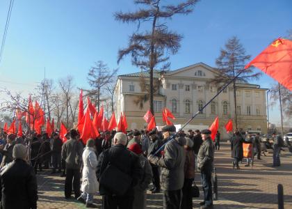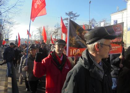 7 ноября в Иркутске состоялись митинг и шествие, посвящённые 100-летию Великой Октябрьской социалистической революции. Сбор участников состоялся у мемориала красногвардейцам, павшим в боях за Советскую власть в декабре 1917 г., у «Белого дома», на пересечении улицы К. Маркса и бульвара Гагарина. У памятника состоялся короткий митинг, на котором секретарь горкома КПРФ Г.Н. Калиновский рассказал о событиях 100-летней давности на этом месте, и возложение цветов.