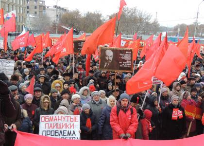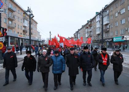 Под звуки нестареющего «Интернационала» 7 ноября в Омске прошла демонстрация и митинг в честь 100-летия Великой Октябрьской социалистической революции