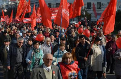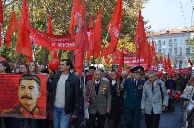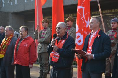 Коммунисты несли транспаранты с лозунгами: «Вернём социальные завоевания Октября»; «Слава Великому Октябрю»; «Ну и как Вам живётся при капитализме?»; «Программу КПРФ — в жизнь!»; «Курс России — вперёд к социализму».