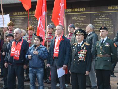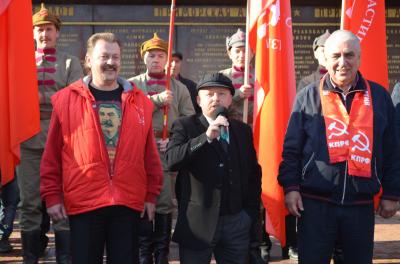 Василий Михайлович, говоря о сегодняшней ситуации, отметил: «К сожалению, сегодня, эту знаменательную дату, мы встречаем в обстановке совсем не праздничной. Мы живем в обстановке реставрации капитализма в России, в обстановке утраты многих социалистических завоеваний. И сегодняшняя знаменательная дата, это не только повод для гордости, но прежде всего, повод для новой борьбы! Борьбы за светлое будущее. Сегодняшняя дата — это напоминание нам о том, как именно, достигаются те завоевания, о которых мы вспоминали выше. Это повод напомнить всем гражданам нашей страны, о тех методах и том пути, который приведет нас к торжеству идеалов социализма»