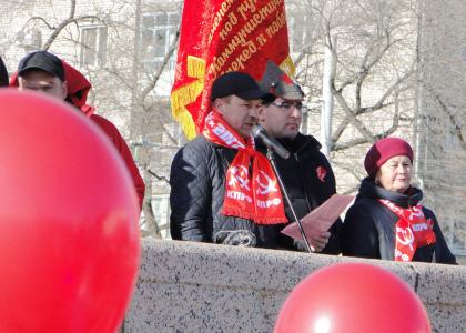 Поздравили амурчан с трибуны председатель областной КРК Валерий Песенков, коммунист, ветеран труда Александр Пинчук, председатель Совета Амурского отделения «Боевое братство» Николай Москалев, активист комсомольской организации Александр Солодовник. В ходе митинга первый секретарь Благовещенского горкома КПРФ Нина Тямкова вручила партийные билеты новым товарищам.