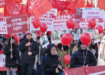 Впервые колонну КПРФ пополнил «Бессмертный полк героев гражданской войны». Амурчане несли портреты: