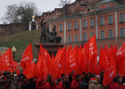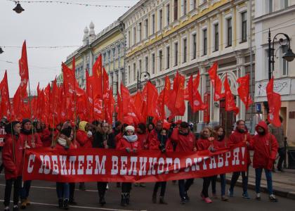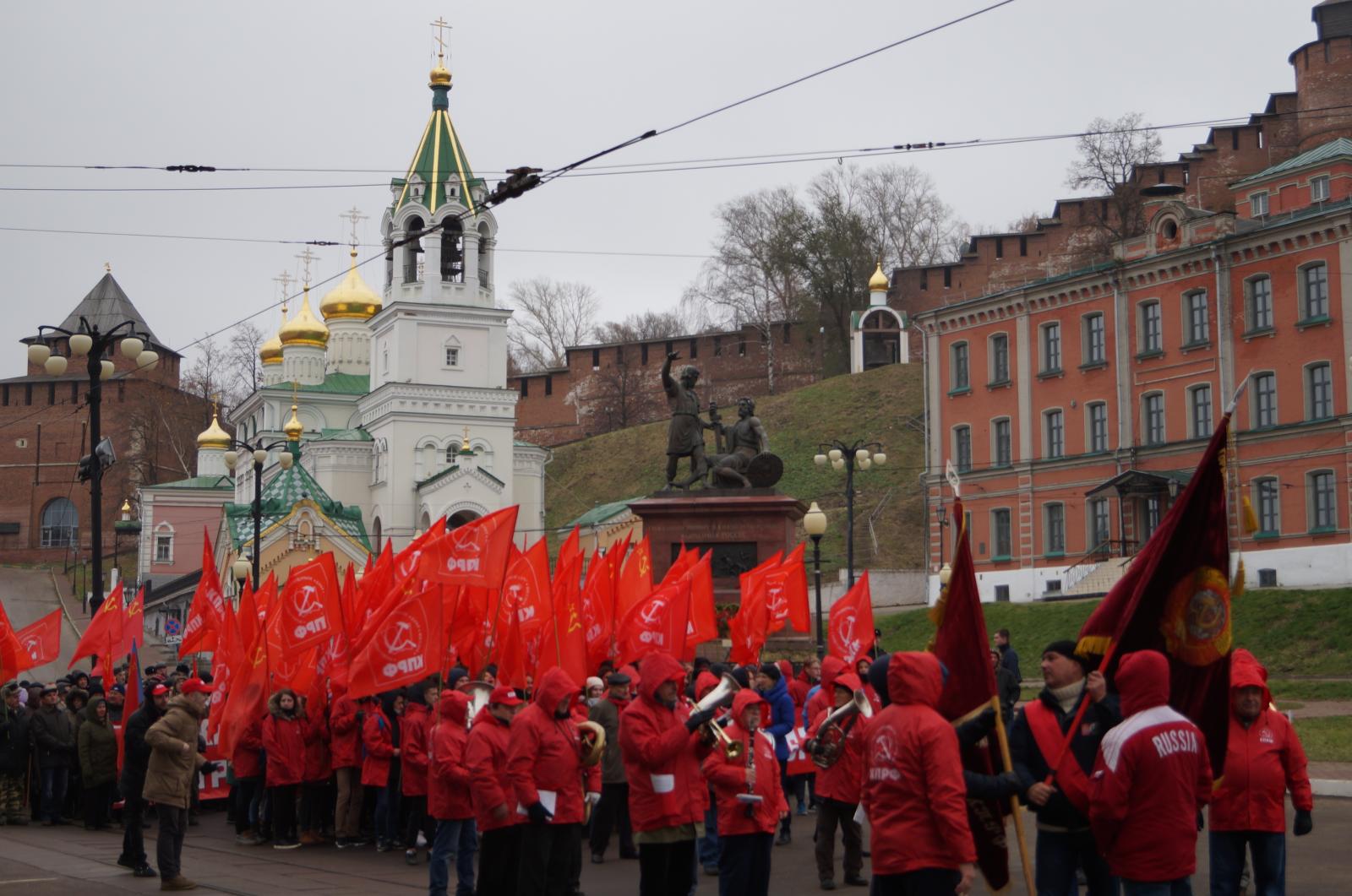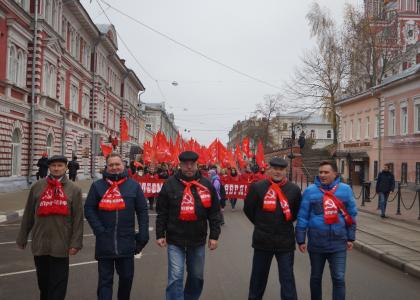 В день столетия Великого октября Нижегородское региональное отделение КПРФ провело традиционное праздничное шествие от площади Народного единства до площади В.И. Ленина, где состоялся торжественный митинг.