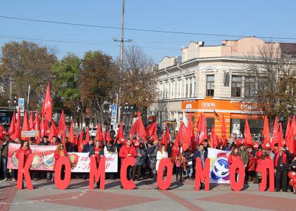 Под звуки оркестра колонна демонстрантов проследовала от парка им.Тренёва до памятника вождю мирового пролетариата, скандируя: «Ленин-Октябрь-Победа!», «Вернем социальные завоевания Октября!», «Великому Октябрю – Слава!». В ответ звучало дружное и громкое: «Ура!»