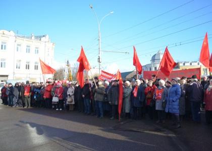 7 ноября в Вологде в ознаменование 100−летия Великой Октябрьской социалистической революции состоялось торжественное шествие и митинг у памятника В.И. Ленину на площади Свободы. Среди выступавших – первый секретарь Вологодского областного комитета КПРФ А.Н. Морозов, секретарь обкома М.В. Селин, коммунисты А.В. Отряскин, Д. Климович и другие.
