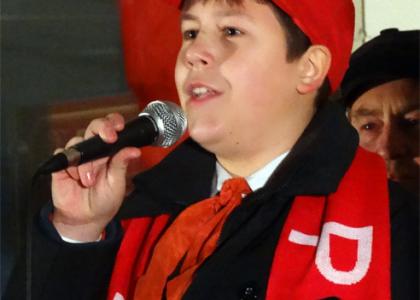 Пионер Александр Овчаров прочитал стихотворение о Ленине.