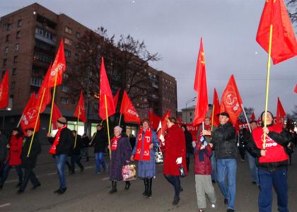 Молодежь была повсюду: во всех колоннах, а их было немало – по районам, несла растяжки и флаги, дежурила вместе с полицией в отряде «Воевода», который создал обком КПРФ и дал поручением молодым коммунистам следить за порядком в городе.