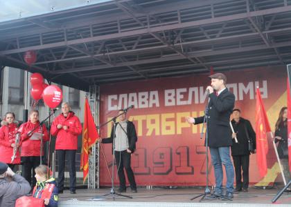 Митинг открыло выступление первого секретаря обкома КПРФ Игоря Ревина. По словам главного коммуниста Янтарного края, Ленинбыл гениальным человеком, вытащившим страну из бездны, куда ее столкнула политика царского и Временного правительств, и запустившим мегапроекты, такие как ГОЭРЛО. По сравнению с Ильичом нынешняя власть это карлики, которым абсолютно нечем похвастаться. Кроме того, Октябрь придал импульс всей мировой истории, благодаря его влиянию все восточные страны освободились от ига колонизаторов. Сейчас эстафету от российских большевиков приняла Коммунистическая партия Китая – страны, демонстрирующей небывалые успехи в развитии.