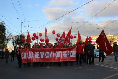 Во вторник, 7 ноября, калининградские коммунисты провели демонстрацию и митинг, посвященные столетнему юбилею Великого Октября.