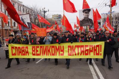 Полтысячи человек, которые пришли по собственной воле в будний день, а не были согнаны как на «день народного единства» в минувшую субботу – это хороший результат для столицы Дальневосточного федерального округа. Причем на митинге присутствовало немалое число молодых людей. У некоторых из них в руках были портреты деятелей революции – Ф.М. Дзержинского, Я.М. Свердлова, В.А. Антонова-Овсеенко и других. Кто-то отпросился с работы, кто-то взял отгул, кто-то использовал свое обеденное время, дабы поучаствовать в праздновании юбилея Революции.