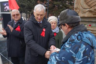 В начале митинга были вручены партийные билеты новым членам партии. Далее слово взял Первый секретарь Хабаровского краевого комитета КПРФ А.П. Громов: