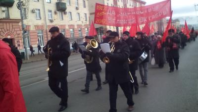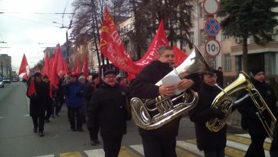 выстроились в колонны. Коммунисты прошли по центральным улицам города Ижевска.