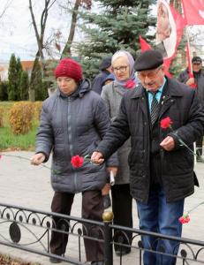 По ходу движения участники акции возложили цветы к вечному