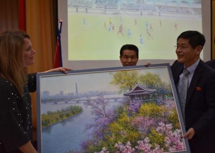 Выставка художественного творчества из Корейской Народной Демократической Республики открылась в центре образования № 25 г. Тулы. В церемонии открытия принял участие Полномочный министр посольства КНДР Зин Чжен Хев, депутат Государственной Думы, лидер коммунистов Тульской области Олег Лебедев, депутат Тульской городской Думы, секретарь ЦК КПРФ Владимир Исаков, заместитель председателя Тульской областной Думы, кандидат в члены ЦК КПРФ Алексей Лебедев, а также советники и секретари посольства КНДР в России.