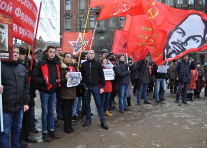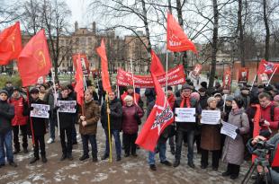 Митинг, который вел секретарь Центрального райкома КПРФ Андрей Язов, открылся выступлением первого секретаря Санкт-Петербургского горкома КПРФ, члена Президиума ЦК партии О.А. Ходуновой.