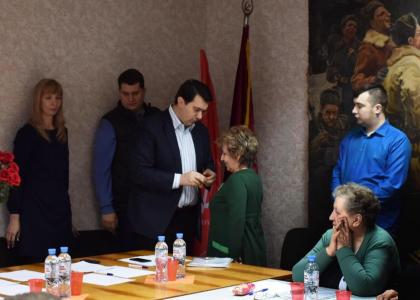 Первый секретарь Тульского обкома КПРФ Олег Лебедев вручил Партийный награды ветеранам партии.