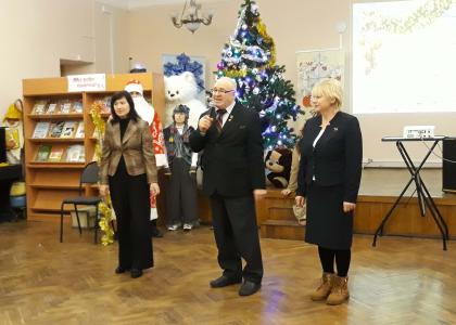 Интересный новогодний концерт для ребят с песнями, танцами, стихами, Дедом Морозом и Снегурочкой подготовили сотрудники библиотеки.