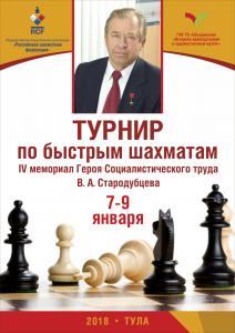IV шахматный турнир «Мемориал В.А.Стародубцева по быстрым шахматам» проходит 8 и 9 января. Церемония награждения победителей состоится 9 января в Тульском государственном музее оружия. В ней примет участие бывший воспитанник Тульского городского шахматного клуба, заместитель Председателя ЦК КПРФ, депутат Государственной Думы Юрий Афонин.