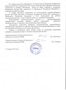 Копия письма направлена в избирательную комиссию Курганской области.